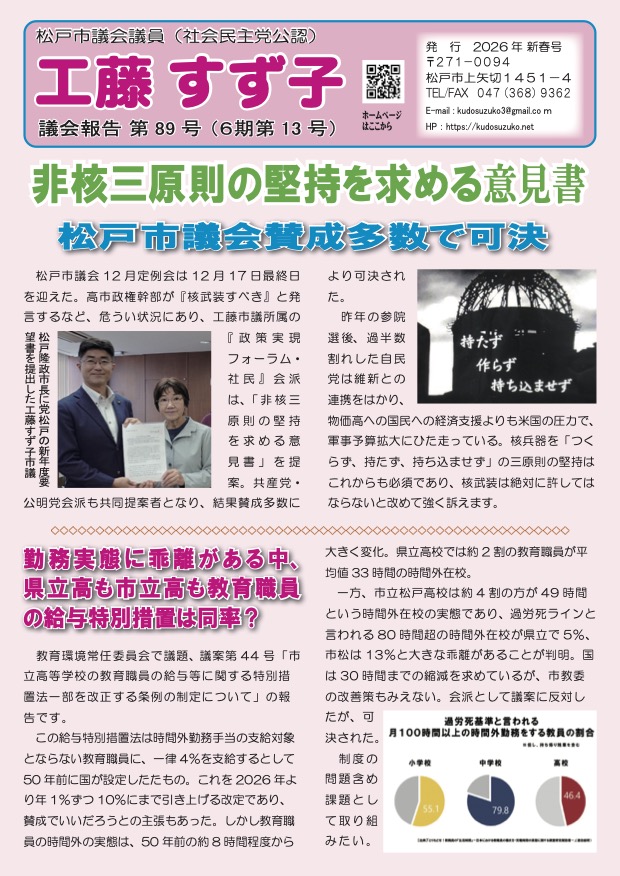 非核三原則の堅持を求める意見書 議会報告書2026年 新春号です。